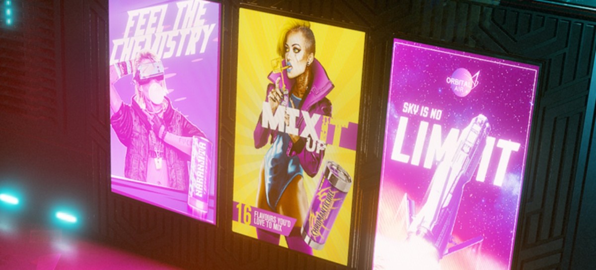 Kasia Redesiuk erklärte: „Hypersexualisierung ist überall sichtbar und in unseren Ingame-Werbungen gibt es viele Beispiele von hypersexualisierten Frauen, hypersexualisierten Männern und hypersexualisierten Menschen ‚dazwischen‘. Das alles soll zeigen, dass [wie in unserer modernen Welt] die Hypersexualisierung in der Werbung einfach schrecklich ist. Es war eine bewusste Entscheidung von unserer Seite, das in dieser Welt so zu zeigen – eine Welt, in der man ein Cyberpunk ist, eine Person, die gegen Unternehmen kämpft. Diese [Werbung] ist es, gegen die man kämpft.“