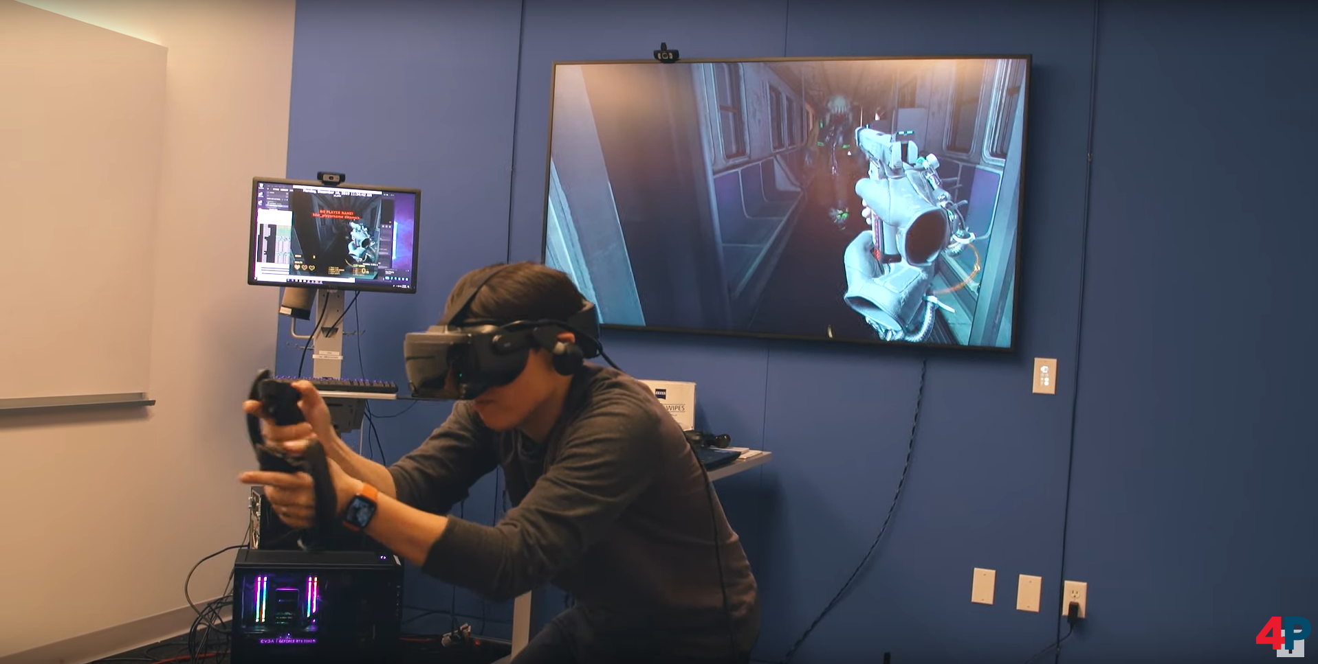 Für ein großes Problem habe allerdings bei vielen Headsets die Quickturn-Funktion (also ruckartiges Drehen gegen Übelkeit) geführt, erläutert Smith. Da diese Funktion wie in anderen Spielen auf dem rechten Stick liegt, kam sie sich offenbar oft mit dem Waffenwechsel in die Quere, der per Klick auf den rechten Stick durchgeführt wird. So hätte er sich beim Waffenwechsel oft vom angreifenden Alien weggedreht und plötzlich verwirrt in die falsche Richtung gestarrt. Die momentanen Steuerungs-Schemata sind allerdings noch nicht final.