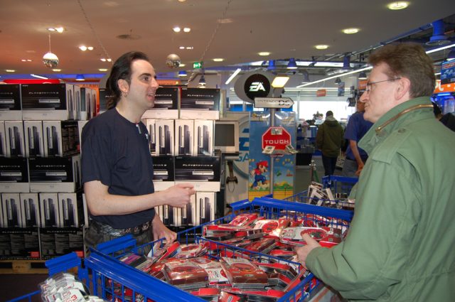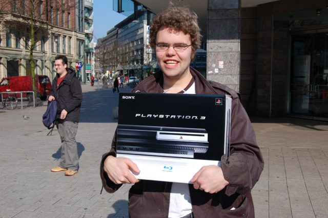 23. März 2007, der gleiche Media Markt in Hamburg: Gegen 9:30 Uhr stehen 5 Leute vor der Ladentür und wollen nur eines: Die PlayStation 3 <A class=DYNLINK onmouseover="DynToolTipp_Show('Klicken für Gameinfos‚)“ onmouseout=“DynToolTipp_Hide(); “ href=“javascript:DynCont_Display(‚Gamefinder‘,’runmod.php?sid={SID}&LAYOUT=dyncont_gf&spielid=7674′)“>