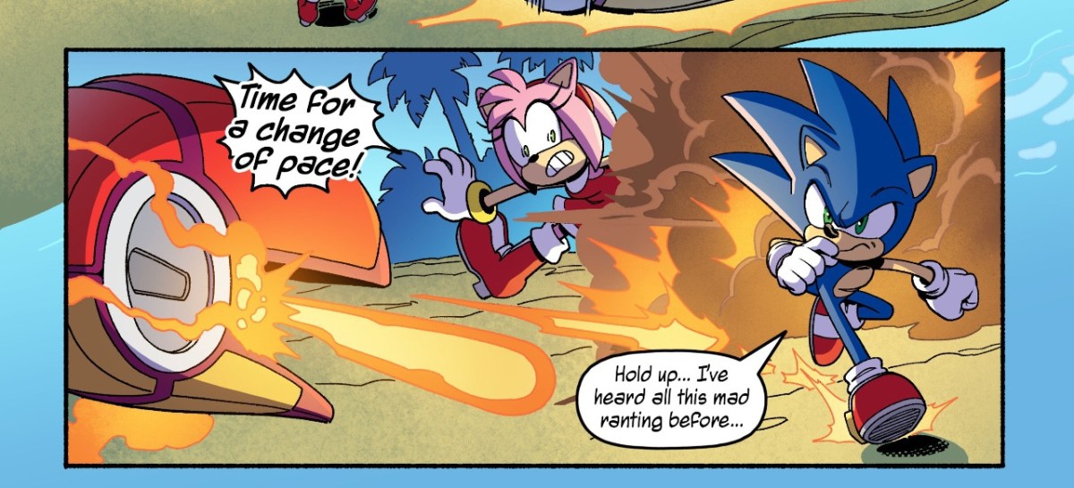 Beide Teile sind lediglich einige wenige Comic-Panels lang, allerdings nahm man sich Zeit für die besonders detailverliebte und farbenfrohe Darstellung der Figuren aus Sonic Frontiers. So sehen wir im ersten Teil des Comics, wie das Team rund um den blauen Igel den Kampf gegen Eggman aufnimmt, jedoch ist dabei nicht alles so, wie es scheint.