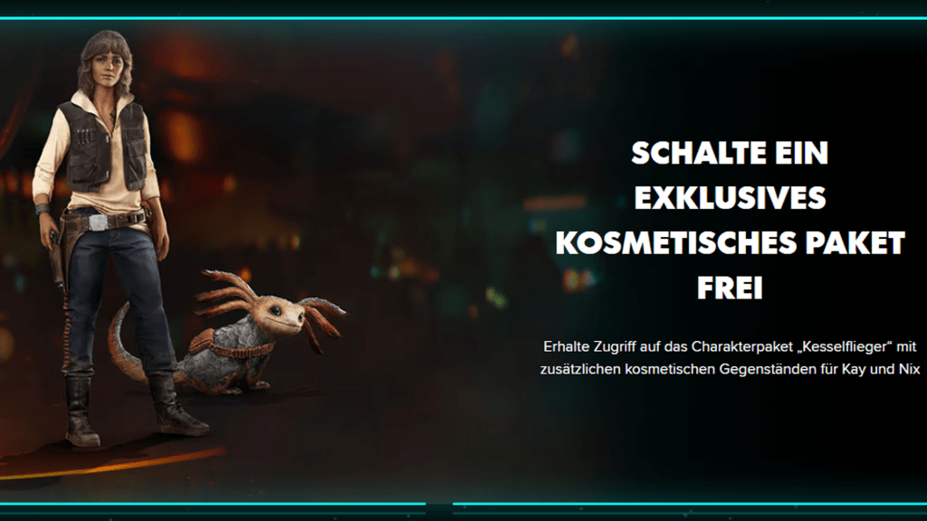 Der Titel wird dabei in drei unterschiedlichen Editionen angeboten: als Standard, Gold und Ultimate. Am Interessantesten dürfte der Season Pass in Gold und Ultimate Edition sein. Darin enthalten sind die beiden DLCs Jabbas Schachzug und das Charakterpaket Kesselflieger – bei letzterem sieht Kay aus, als könne sie den Millennium-Falken unter zwölf Parsecs über die Kessel-Strecke schubsen.