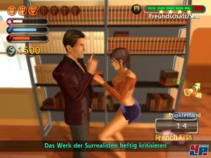 Um voran zu kommen, müsst ihr beispielsweise in der winzigen Disko eines der kurvigen Partyluder aufreißen, was gar nicht so einfach ist, weil euch ständig jemand dazwischen funkt. Da kann es schon mal ein blaues Auge geben. Auch wenn der Hauptdarsteller ständig an Gegenständen und Türen hängen bleibt, hält sich das Mitleid doch in engen Grenzen: Wer identifiziert sich schon gerne mit einem A…, das so gar nichts Liebenswürdiges besitzt? Die superplatten Dialoge mit den Sexhäßchen sind auf Dauer eher zum Gähnen. Die Akteure bleiben so insgesamt blass wie die eines Pornofilms, die eben nur für das Eine in den 3D-Kulissen herumlungern. Leider funktioniert nicht einmal eine direkte Anfrage nach Matratzensport, weshalb ihr euch erst umständlich auf einer Flirtskala nach oben arbeiten müsst. Gähn…