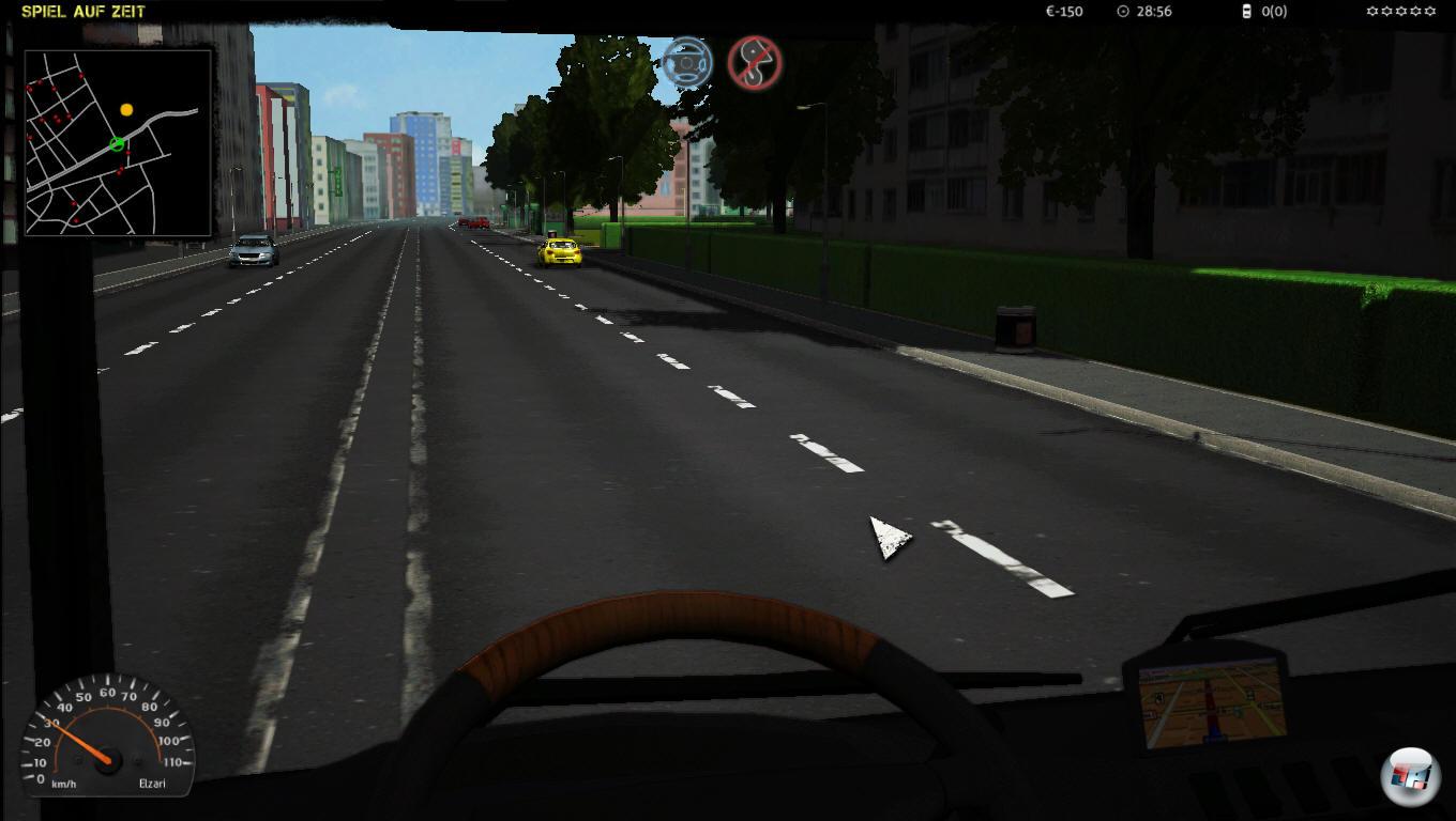 Unterwegs zum „Kunden“. Das Navi unten rechts hat übrigens keinerlei Funktion, die Mini-Map oben links dafür schon.