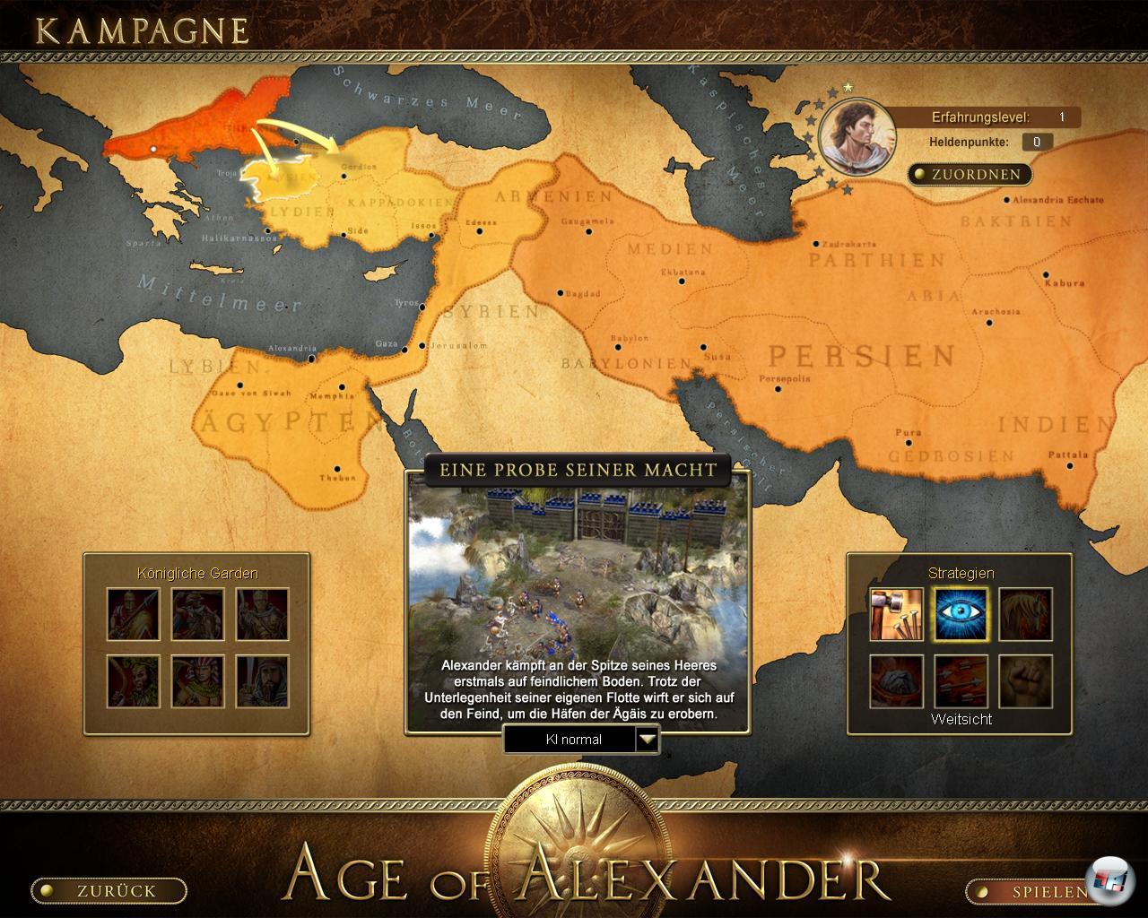 baut ein paar Gebäude in die wenig markante Landschaft, hebt Soldaten aus und schickt sie in die Schlacht. Allerdings fehlt es völlig an kreativen Ideen. Die einzige Neuerung ist, dass man wählen kann, welche Bewaffnung die Soldaten tragen. Das ist nötig, denn bei einigen Missionen hat man zu Beginn nur Beutewaffen, um seine Krieger zu bewaffnen. Ansonsten braucht man Gold und Erz, die einzigen beiden Rohstoffe, um Krieger zu bezahlen. Wichtig ist es, die Kämpfer auf Pferde zu setzen, da sie so länger durchhalten. Daher gibt es Nebenquests, in denen man Reittiere abstauben kann. Mit ihnen fühlt man sich wirklich ein bisschen wie die berittene Gefolgschaft von Alexander, auch weil bekannte Namen wie Parmenion auftauchen. Alexanders getreues Ross Bukephalos kommt nur am Rande vor, da es ihn schneller macht.