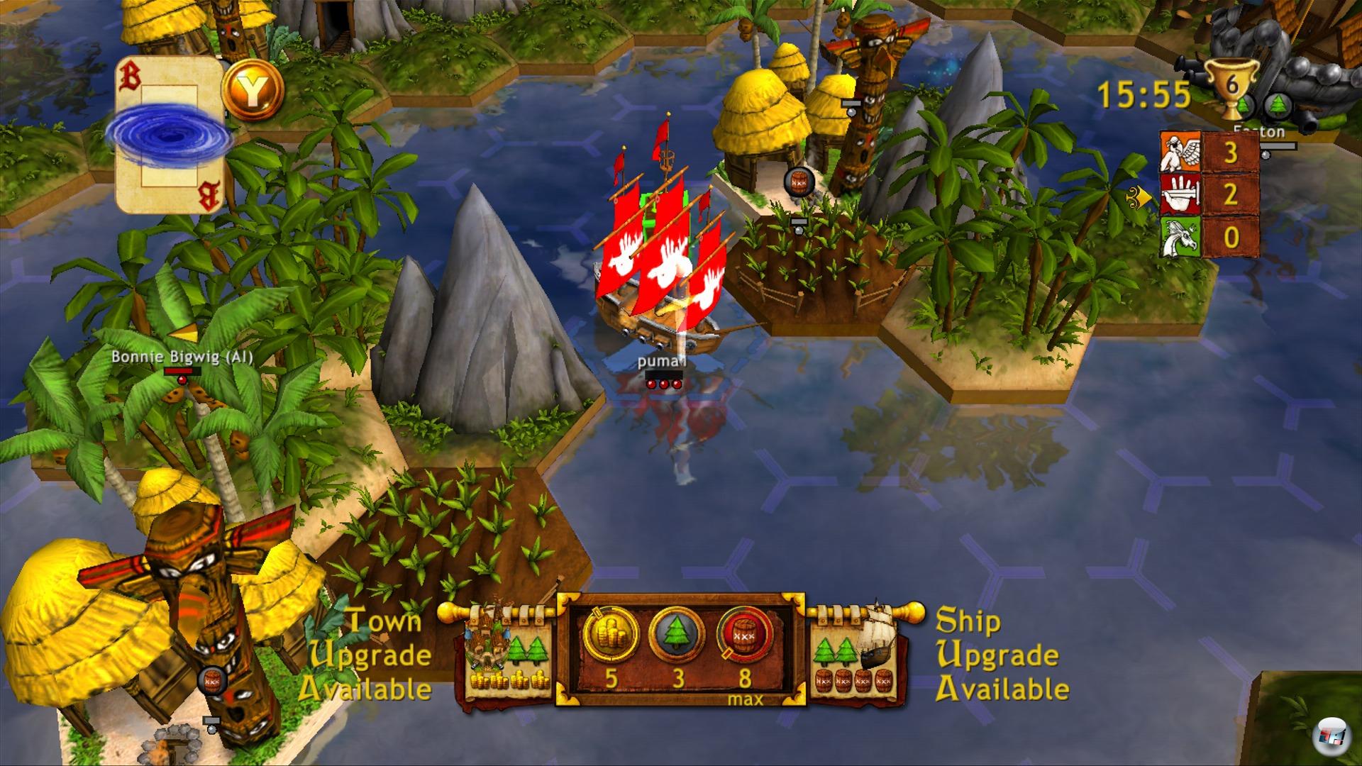 Versenkte Schiffe hinterlassen genauso wie zerstörte Dörfer Beute, mit der ihr eigene Schiffe oder Städte aufrüsten könnt. Eroberte Städte werden hingegen nicht dem Erdboden gleich gemacht, sondern produzieren nach Eroberung regelmäßig Rohstoffe für ihren aktuellen Besitzer. Insgesamt gibt es drei Ressourcen: Holz, Gold und Rum. Mit Holz und Gold verbessert ihr die Verteidigungsanlagen von Städten, mit Holz und Rum fügt ihr eurem Piratenschiff weitere Segel, Panzerungen oder Kanonen hinzu. Das System ist unglaublich simpel, erfordert aber dennoch Taktik und Voraussicht. So machen zusätzliche Kanonen euren Kahn zwar stärker, aber auch langsamer, Panzerungen lassen euch länger ohne Reparaturen auf Beutejagd gehen, während euch zusätzliche Segel einen oft entscheidenden Geschwindigkeitsvorteil verleihen.