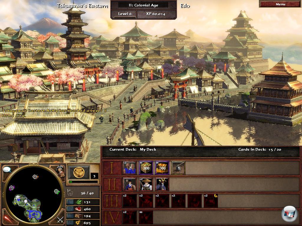 Festungen und geschwungene Himmelstore, von denen manche sogar zyklisch Armeen bereitstellen und die auch schneller gezimmert sind als etwa bei Age of Empires 1, Civilization oder Rise of Nations. Weitere Neuerungen sind die Exportrohstoffe, die euer Volk automatisch anhäuft und mit denen sich diplomatische Vertretungen einrichten lassen. Wer sich beispielsweise bei den Briten einkauft, bekommt militärische Vorteile und kann Söldner ausheben, die er normal nicht hätte. ![]()