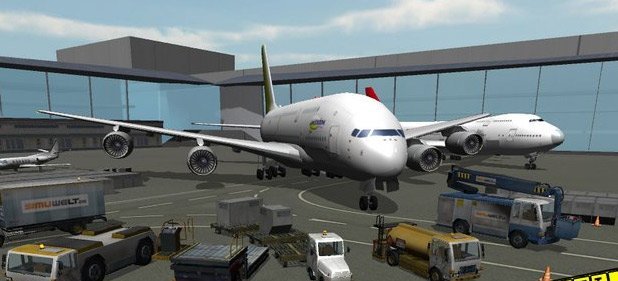Attraktion hinzugewonnen. Ich wollte damit lediglich klarstellen: Der Flughafen, der in diesem Spiel simuliert wird, hat keinen Namen und ist auch keinem bekannten Flughafen nachempfunden worden. Es handelt sich um einen Standard-Airport mit Start- und Landebahn sowie acht Gates an zwei Terminals. Sechs Übungseinsätze gefolgt von sieben Aufträgen erwarten mich, danach lockt das „freie Spiel“. Worum geht es? Vom Betanken der Jumbos bis zum Beladen und Enteisen über das Liefern der Bordverpflegung bis zum Schleppen der Flieger an ihre Start- und Parkpositionen soll alles simuliert werden. Dabei übernimmt der Spieler den kompletten Job alleine – kann das gut gehen?