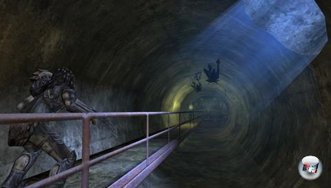 Irgendwie tun mir nur die Grafiker leid, denn weil der Rest des Teams ja die Engine aus James Bond 007: Liebesgrüße aus Moskau sowie Miami Vice: The Game wiederverwenden konnte, mussten die Designer offenbar Kulissen und Figuren zu einem Spiel kreieren, das im Grunde keiner wollte. So tun sie denn auch nur das Nötigste, um euch durch die drei Schauplätze (ein Stadtgebiet, dessen Kanalsystem sowie ein Industriegebiet) zu schleusen. Drückt ihr vor einer Leiter die X-Taste, gelangt der Predator oft über hohe Stege an die zu beseitigenden Wrackteile, doch das war’s auch schon abseits von „Gehe direkt zum Ausgang, gehe nicht in den Geheimraum, ziehe keine Extras ein“. Hin und wieder erlebt ihr dabei, wie ein Alien einen Menschen über den Boden schleift, ansonsten sind Kamerafahrten und einfacher Text die dramaturgischen Höhepunkte. Immerhin dürft ihr wählen, welchen der drei erwähnten Wege ihr einschlagt, wobei ihr jederzeit zwischen den unterschiedlichen Pfaden wechseln könnt.