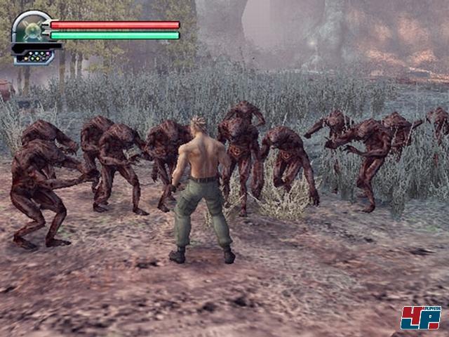 Erinnerungen. Im Grunde sind nur die Renderfilme empfehlenswert, der Rest der Grafik dümpelt auf erschreckend mittelmäßigem Niveau herum. Lowlight der hölzernen Animationen ist tatsächlich der Protagonist, der herumrennt, als hätte er sich in die Hosen gemacht. Die immergleichen Gegner können, vermutlich um die 18er Einstufung zu rechtfertigen, in wenige Teile zerlegt werden, und spritzen dabei fleißig mit jeder Menge Plastikblut um sich – besonders gut zu sehen in den an Serious Sam <A class=DYNLINK onmouseover="DynToolTipp_Show('Klicken für Gameinfos‚)“ onmouseout=“DynToolTipp_Hide(); “ href=“javascript:DynCont_Display(‚Gamefinder‘,’runmod.php?sid={SID}&LAYOUT=dyncont_gf&spielid=4545′)“>