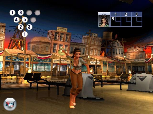 Im Spiel mit der Lizenz der großen Bowling-Bahn-Kette rollt die Kugel brav in die Richtung, die ihr vorgebt. Das Werfen funktioniert im Prinzip genau so wie im Vorbild: Ihr haltet die Fernbedienung wie eine Bowlingkugel vor eurer Brust, holt mit dem Arm aus und macht eine Wurfbewegung.