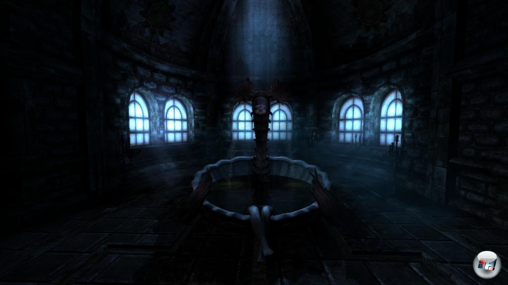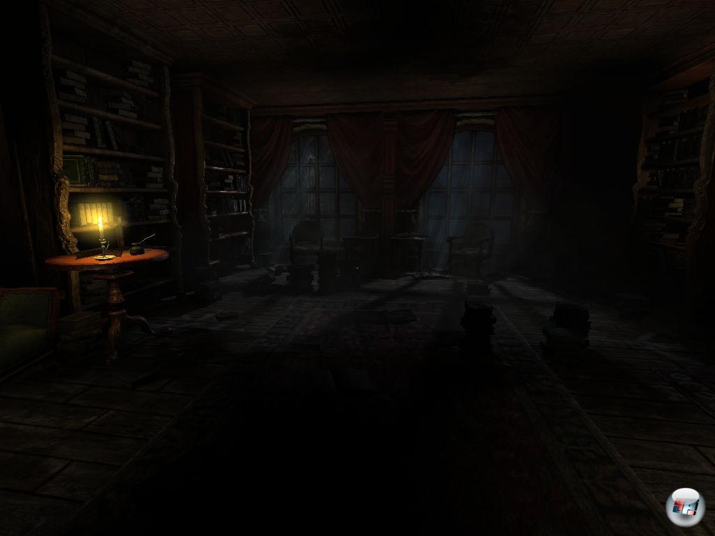 Im Gegensatz zur verstörenden Inszenierung bleibt man ansonsten klassischen Tugenden des Sammelns und Rätselns treu, denn ich muss zum einen in vielen Schubladen, Schränken und Regalen aktiv nach Zunderbüchsen oder Öl für meine Laterne Ausschau halten, indem ich sie per Maus aufziehe – einfach anvisieren und den Nager nach hinten ziehen. Zum anderen gilt es einige Aufgaben zu lösen, um den Weg durch das Schloss frei machen, in dem blutrote Organismen für Sackgassen sorgen. Wie kann ich diese ekelhaften Schleimnetze wohl auflösen? Muss ich vielleicht ins Labor oder erst ins Archiv?
