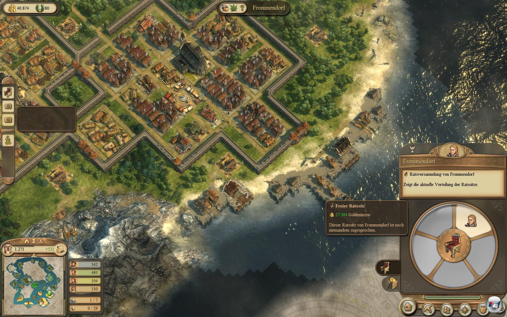 Mit der Ratsversammlung könnt ihr gegnerische Inseln ohne militärische Mittel erobern und das ist zugleich die interessanteste Neuerung. Um Zugang zur Ratsversammlung zu erhalten, benötigt ihr Patrizier und Kontakt zu ‚Giacomo Garibaldi‘, danach wird ein neuer Menüpunkt beim Kontor