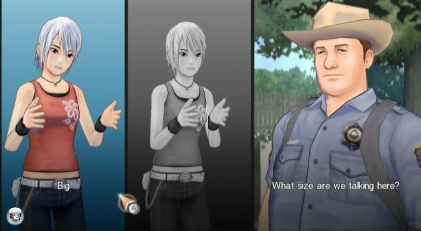 Dass man nicht einschläft liegt nur daran, dass es ab und zu Entscheidungen geben kann: Der Bildschirm teilt sich dann in drei Bereiche und Ashley kann z.B. die Wahrheit sagen oder lügen, kann jemandem vertrauen oder misstrauen, kann sich mutig oder ängstlich geben. Hier schlummerte so viel Potenzial! Denn das sorgt natürlich für Rollenspielreize à la BioWare und lockert die Lese-Einbahnstraße scheinbar mit Abzweigungen auf. Aber leider wirken sich diese Entscheidungen nicht konsequent genug aus. Schlimmer noch: Meist ist es vollkommen egal, wie man reagiert, denn der Gesprächsfaden wird danach genau so weiter gesponnen wie es die Entwickler wollen. Und in den Momenten, wo man sich eine Reaktion oder einen Eingriff wünschen würde, wird sie erst gar nicht angeboten.