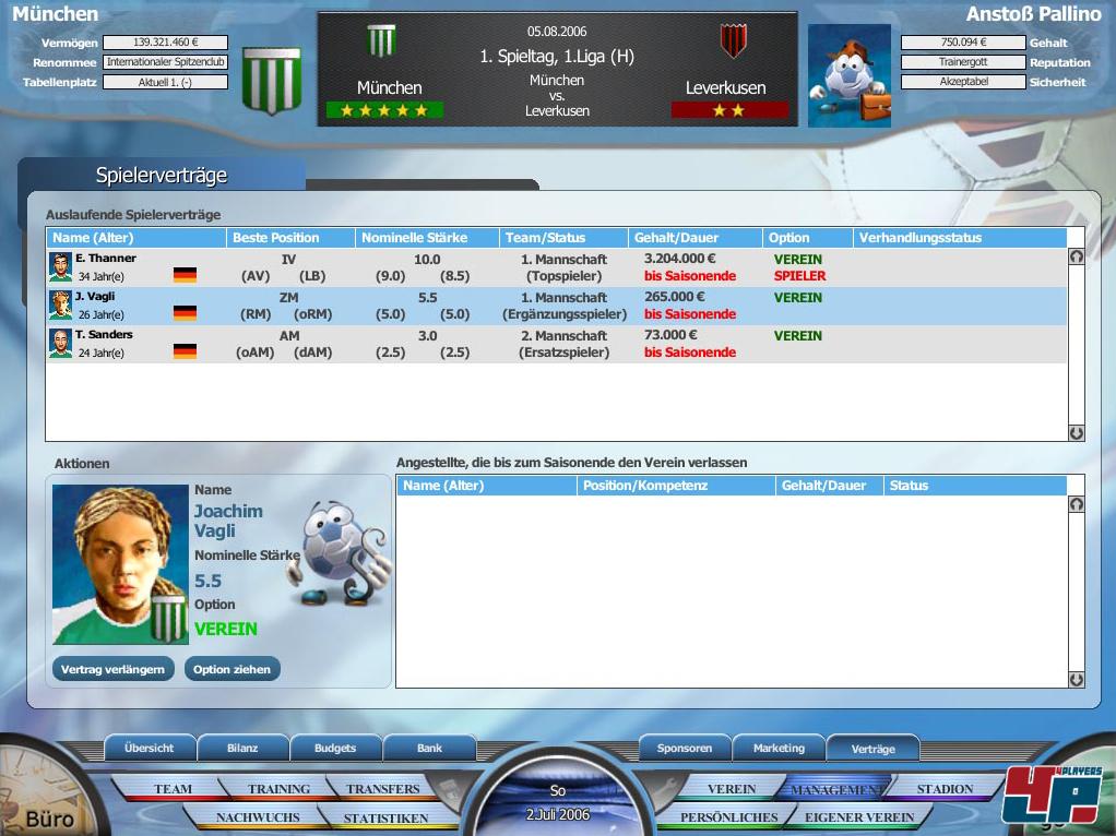 Die Navigation innerhalb der verschiedenen Bereiche, angefangen von rudimentären Finanzen über das Vereinsgelände bis hin zur Manndeckungseinstellung geht dabei erfreulich einfach vonstatten und sollte nach kurzer Eingewöhnungszeit selbst für absolute Manager-Frischlinge kein Problem mehr darstellen. Dass das grafische Gesamtbild dabei immer noch hinter Genregrößen zurücksteht, ist allerdings bedauerlich. Man kann sich weder mit Segas klar strukturierter, fast schon klinischer Aufgeräumtheit messen, noch mit der extrem auf Hochglanz polierten Edel-Oberfläche der EA-Manager. Das bunte, leicht prollige (im positiven Sinne) Design wirkt auf den ersten Blick auch etwas überladen, bietet aber schnell alle wesentlichen Informationen.