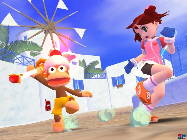 [GUI_SPIELLINKS(align=left,SPIELID=7300)]Allerdings ist bei den so harmlos aussehenden Äffchen Vorsicht geboten: Nicht nur, dass einige Exemplare schwer bewaffnet oder extrem flott sind; sie schlagen euch manchmal sogar mit euren eigenen Waffen. Wie das? Die Kerlchen sind selbstbewusster geworden und klauen euch die Gadgets direkt aus euren Händen, wenn sich die Gelegenheit ergibt. Und was soll ein Affenjäger ohne sein Fangnetz ausrichten? Dann gilt es erst mal, sich euer Eigentum zur Not mit Händen und Füßen zurückzuholen. Doch auch ihr habt eine neue Überraschung in petto: Habt ihr genügend Morph-Energie von besiegten Gegnern oder aus Kisten eingesammelt, verwandelt ihr euch auf Knopfdruck in Super-Charaktere wie einen Ritter, eine Fee oder ein schießwütiges Cowgirl, mit denen ihr den Gegnern für eine begrenzte Zeit mächtig einheizt. Je nachdem, für welche Figur ihr euch entscheidet, stehen unterschiedliche Verwandlungsformen zur Verfügung. Ansonsten gibt es zwischen beiden Hauptfiguren jedoch keine Unterschiede im Spielablauf, der nicht nur aus dem Fangen von Affen und dem Verprügeln von Blechkameraden besteht, sondern auch Hüpfpassagen sowie diverse Minispiele zu bieten hat. Letztere leiden jedoch meist unter einer katastrophalen Steuerung, wenn man etwa versuchen muss, einen Highspeed-Flitzer mit beiden Analogsticks über den Asphalt zu dirigieren und dabei kaum die Kontrolle behalten kann.
