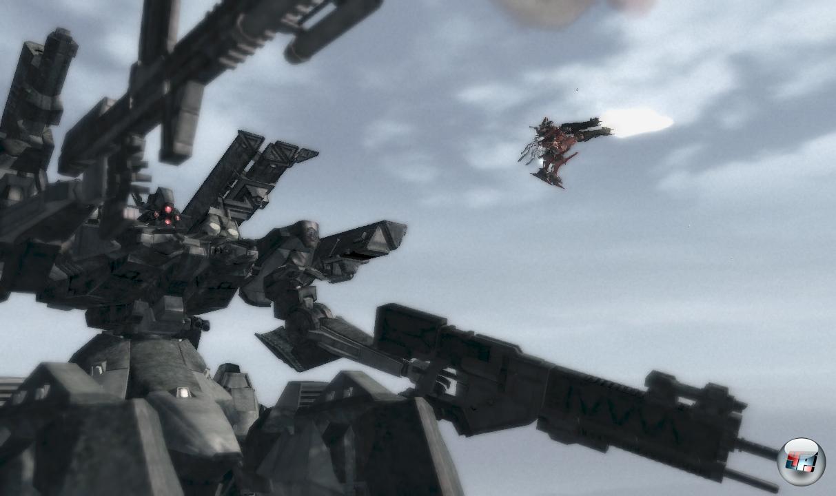 Es ist nicht einmal das finale Duell, mit dem For Answer diesen frühen Höhepunkt schafft. Und obwohl die folgenden Auseinandersetzungen diese Schlacht nicht mehr toppen werden: Es gibt weitere Kampfstationen und ähnlich beeindruckende Momente, die dem recht ausgetretenen Roboter-Kampf eine ganz neue Dimension verleihen. Auch wer den Reaktor im Innern einer fahrenden Verteidigungsmauer zerstören muss oder seinen flinken Gegnern Raketenschwärme um die Ohren wirft, während er über einer Wolkenstadt feindlichem Feuer ausweicht, erlebt erhabene Momente. Das Adrenalin schnellt in die Höhe, die Musik schafft mit den Klängen des synthetischen Orchesters einen melancholischen Kontrapunkt – es ist bedauerlich, wie vehement solche, auch grafischen aufregenden Höhepunkte in der veralteten Präsentation und den völlig einfallslosen Missionen untergehen.
