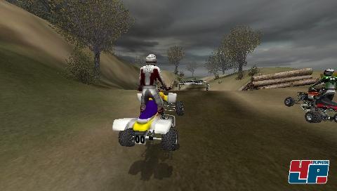 Ließen sich die Quads mit dem PS2-Pad relativ komfortabel steuern, habt ihr sie auf der PSP leider kaum im Griff. Die Steuerung – egal ob über den Analognippel oder das Digitalkreuz – ist enorm schwerfällig und so kommt es nicht selten zu frustrierenden Abflügen von den hügeligen Pisten. Dummerweise setzt das Programm den Rücksetzpunkt oft so dermaßen ungünstig, dass ihr gleich danach schon wieder abfliegt, wenn ihr nicht sofort in die Eisen geht und einlenkt. Ansonsten versinken eure Siegchancen sehr schnell im Matsch. Hinzu kommt, dass euch die Kollisionsabfrage einige Rätsel aufgibt: Warum kommt es manchmal bereits nach einer kleinen, harmlosen Berührung mit der Streckenbande zum schmerzhaften Sturz, während ihr an anderer Stelle mit hohem Tempo dagegen knallt und einfach weiterfahrt, als wäre nichts geschehen? Eure Gegner legen insgesamt ein gutes, manchmal sogar unfaires Tempo vor und hängen euch selbst auf der normalen Schwierigkeitsstufe gnadenlos ab. Um dem entgegen zu wirken, nehmt ihr kleine Einstellungen an den Quads vor oder rüstet sie mit neuen Teilen wie Reifen oder Auspuffanlagen auf. Bezahlt wird mit Credits,