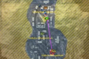 | Als Squad-Leader kann man seinem Team u.a. Marschbefehle erteilen, die dann auf der Minikarte als Wegpunkt erscheinen. Zusätzlich kann man den mächtigen Artillerieschlag anfordern, den der Commander dann höchstpersönlich ausführt. |