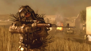Seid ihr durch die Battlefield 2-Prachtgrafik verwöhnt, müsst ihr auch an der Xbox 360 zwei Gänge zurückschalten: Das Gebotene sieht prima, aber beim besten Willen nicht spektakulär und schon gar nicht nach Next-Gen aus. Gut designte Levels, nette Waffen, ansehnliche Figuren – die Optik ist bemerkenswert, lässt es aber an Details mangeln. Der größte Vorteil der 360-Version ist die flüssige Grafik, ansonsten unterscheidet sich die Kulisse nur marginal von ihren Current-Gen-Brüdern – ein paar mehr Shadereffekte auf den Klamotten und dem Boden, etwas polygonlastigere Figuren, ein Tiefenunschärfe-Effekt für den Hintergrund, aber abgesehen von der höheren Auflösung sieht die HD-Variante nicht wirklich besser aus. Außerdem sind die Umgebungen gewohnt steril, es gibt keinerlei Interaktionsmöglichkeiten, es sei denn, die Entwickler sehen sie vor. Der Rest bleibt gleich: dicke Explosionen, gut gemachte Renderfilme und ordentlich geskriptete Szenen im Einzelspielermodus. Auch die Wettereffekte können sich sehen lassen,