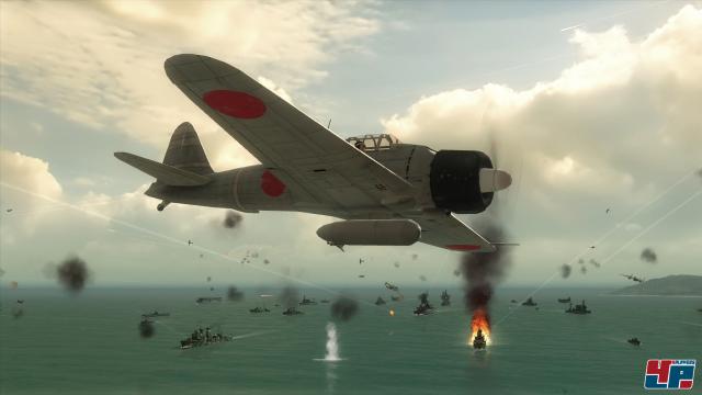 Mächtige Zerstörer schießen aus allen Rohren, Flugzeuge liefern sich mit ratternden Maschinengewehren heiße Dogfights über dem Meer und in der Entfernung pirscht sich ein Periskop an die Wasseroberfläche. Mit dessen Hilfe visiert ein U-Boot das nächste Ziel an, bevor sich Torpedos wie hungrige Raubfische ihren Weg durch das Nass bahnen: Schiffrümpfe werden aufgerissen, Flugzeugträger von 1000 Pfund-Bomben zerfetzt und die Wracks der abgeschossenen Jäger fallen vom Himmel. Der Zweite Weltkrieg ist in vollem Gange und führt euch als US-Kämpfer angefangen beim japanischen Angriff auf Pearl Harbor über die Verteidigung der Philippinen bis hin zur entscheidenden Schlacht um die Inselgruppe Midway. Die Kampagne erstreckt sich über elf Missionen, wobei die ersten vier kaum der Rede wert sind, da sie nicht nur einfach, sondern auch sehr kurz ausgefallen sind. Ab dem fünften Auftrag zieht der Schwierigkeitsgrad allerdings brutal an, so dass ihr mehrere Anläufe braucht, bis ihr eine Taktik erarbeitet habt, die zum Erfolg führt. Seid ihr über- oder unterfordert, dürft ihr vor jedem neuen Versuch den Schwierigkeitsgrad anpassen. Als