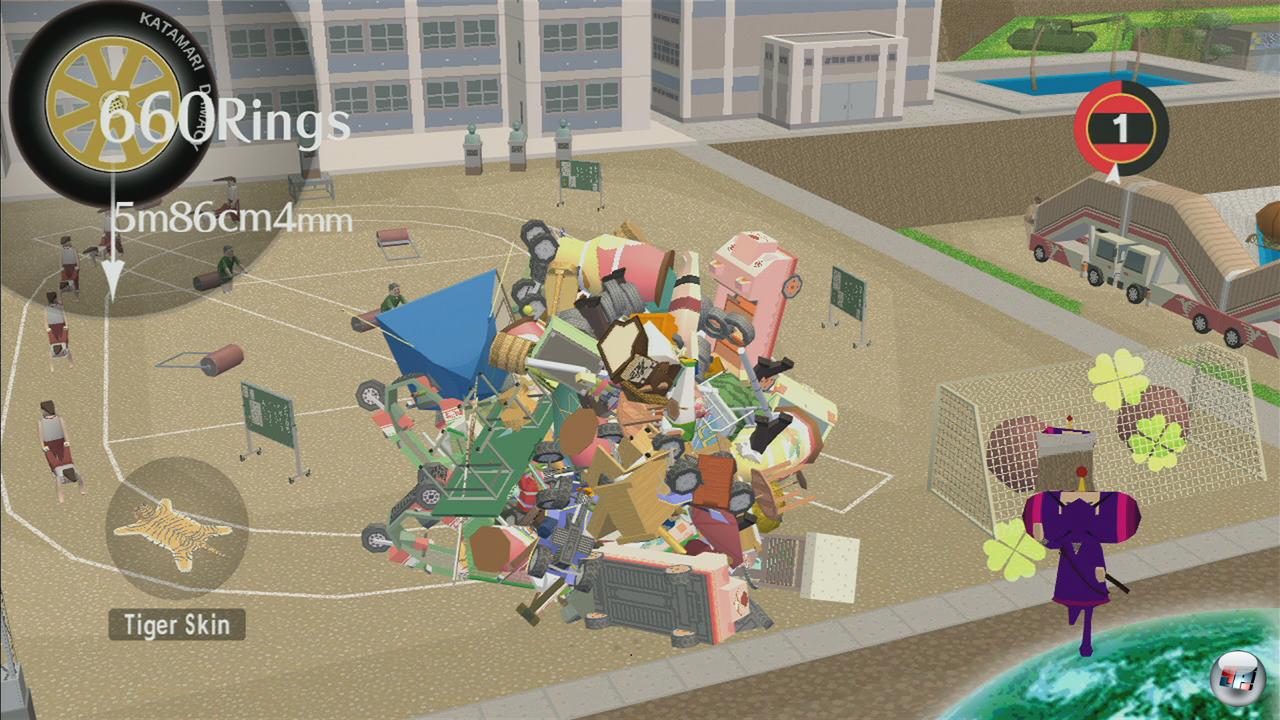 Und so rollt ihr mal wieder alles auf, was euch in den Weg kommt und nicht größer als der aktuelle Katamari ist.