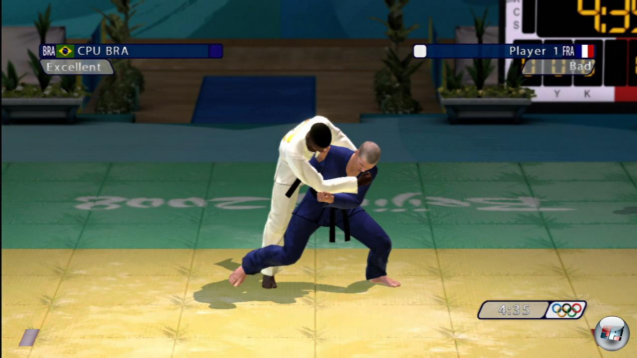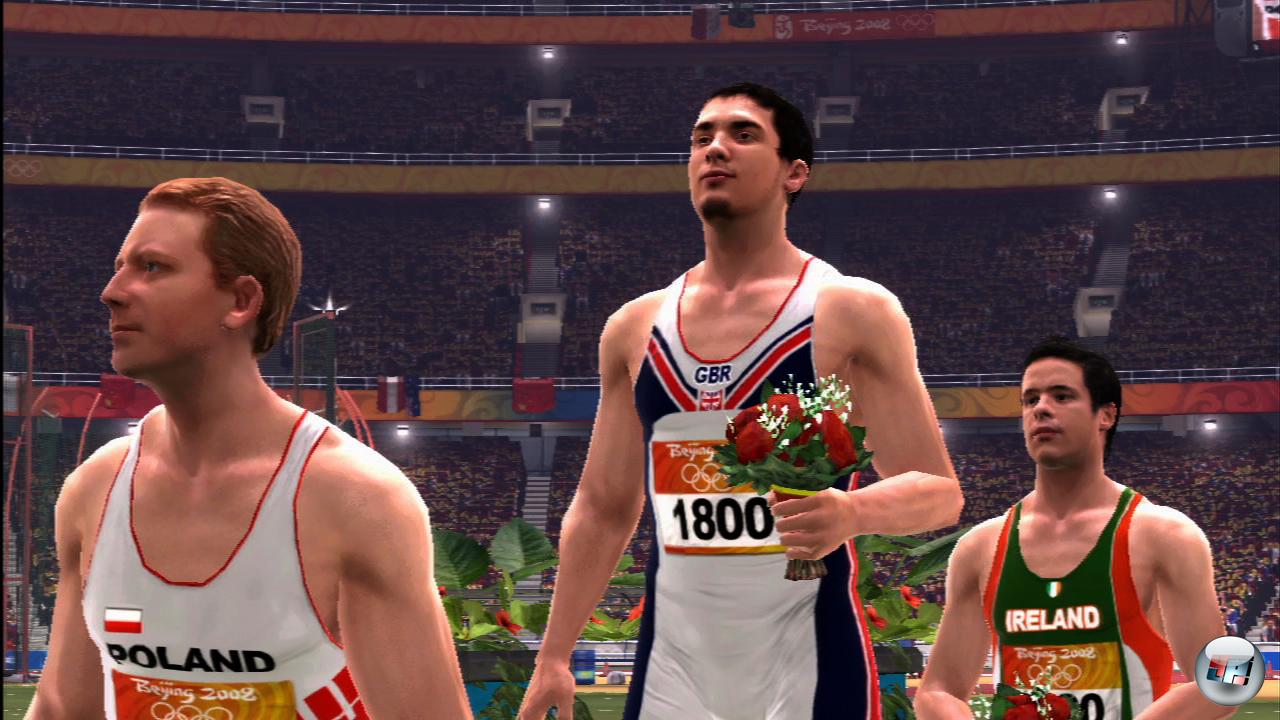 Kaum Grund zur Klage gibt es an der Grafikfront: Okay, die Ladezeiten sind sehr lang (währenddessen bekommt man interessante, aber oft wiederholte Fakten über die Olympiade zu lesen), und die Figuren wirken etwas sehr auf Hochglanz poliert. Aber die fabelhaften Animationen machen diese Makel wieder wett: Perfektes Motion Capturing sorgt für geschmeidig rennende, springende, turnende, rotierende und schwimmende Athleten, die außerdem mit bemerkenswerter Mimik und Gestik auf ihre Ergebnisse reagieren: Bei einem guten Resultat wird schon mal vor Freude gehüpft oder das eine und andere Rad geschlagen – anderenfalls wird ein entsetzter Blick in Richtung Anzeigetafel geworfen oder ausdrucksstark Gott und die Welt verflucht. Grundsätzlich viele Stilpunkte auch für das Hauptmenü, das aufgeräumt und mit schön umherschwebenden Videos im Hintergrund daherkommt. »Grundsätzlich« allerdings deswegen, weil es Abzüge in der B-Note gibt – die Auswahl der Geschlechter in Training oder Wettkampf hätte kaum umständlicher gelöst werden können. Hier gibt es auch sehr coole Musik zu hören, die mit wummernden Beats und orientalischen Streichern für angenehme Atmosphäre sorgt.