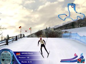 …schwer, weshalb die ersten Runden auch eher einem Elchtest für Langlauf-Ski als elegantem Gleiten gleichen. Ständig steht ihr mit der Begrenzung des Kurses auf Kriegsfuß. Für den Anfang empfehlen sich deshalb einfache Rundkurse mit wenigen Kurven und vielen geraden Strecken. Insbesondere in der Abfahrt ist auf das schlechte Kurvenverhalten der Bretter zu achten! Habt ihr mal begriffen, dass bei der reichlich verunglückten Tastatursteuerung weniger mehr ist, dann bleibt ihr auch meist in der Spur. Zu Fall