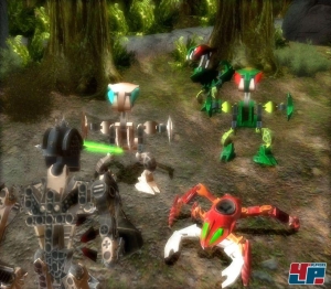 oft ein Dutzend Widersacher gegenüber, aber die an Spinnen oder Vögel erinnernden Gegner fügen euch kaum einen Kratzer zu. Ihr müsst nur draufhalten und schießen. Wobei die eigentlich unkomplizierte Steuerung auf Xbox 360 und PS2 einen Haken hat. Ihr schießt nämlich nicht per Schultertaste, sondern mit einem der vier Knöpfe darunter. Damit ist euer Daumen beschäftigt, kann währenddessen die Blickrichtung nicht verändern und ihr seid auf die automatische Zielerfassung angewiesen. Da ballere ich manchmal gemütlich Kisten, während ich eigentlich Feinde bekämpfen sollte… Nur PC-Besitzer dürfen sich mit der Maus bequem umsehen. Ja, ich weiß: Für Kinder reicht das. Sagt man.
