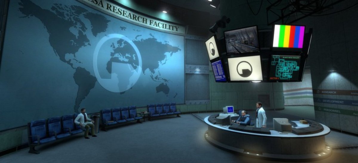 Ach ja, Gordon Freeman… Ikone der Videospielkultur, obwohl er nie auch nur einen Ton gesprochen hat. Erlebt man die komplette Geschichte doch aus seinen Augen, ohne auch nur eine Sekunde lang die Perspektive zu wechseln, und darf sich seinen Teil denken, wenn er angesprochen wird – was für eine Wohltat diese konsequente Erzählweise nach wie vor ist! Man hat ja keinen „Knopf“ im Ohr, der Weg und Lösungen vorsagt. Oder einfach nur davon ablenkt, dass man nach einem fehlgeschlagenen Experiment weitgehend alleine in einer geheimnisvollen Forschungsstation unterwegs ist, deren Wissenschaftler vom Militär kaltblütig ermordet werden, von Aliens sowieso. Wenn Überwachungskameras leise von links nach rechts schwenken, schafft das jedenfalls mehr Unbehagen als jedes „Pass auf, du wirst beobachtet!“ Dass man gelegentlich von Wissenschaftlern oder Wachleuten begleitet wird, verstärkt den Eindruck nur Teil einer glaubwürdigen Welt zu sein.