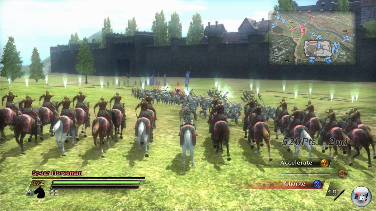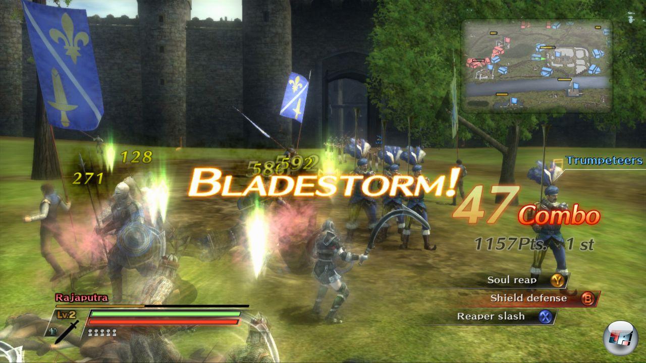 Das taktisch kluge Wechseln der Truppen und kooperieren mit verbündeten Einheiten ist, neben dem Erobern feindlicher Stützpunkte, wie man es auch aus Dynasty Warriors <a class="DYNLINK" onmouseover="DynToolTipp_Show('Klicken für Gameinfos‚)“ onmouseout=“DynToolTipp_Hide(); “ href=“javascript:DynCont_Display(‚Gamefinder‘,’runmod.php?sid=%7BSID%7D&LAYOUT=dyncont_gf&spielid=6405′)“> & Co kennt, das A und O bei den ansonsten eher wenig strategischen Bladestorm-Schlachten. Zwar ist es auch wichtig, eine geeignete Ausgangsposition für die jeweilige Schlacht zu bestimmen und sich die Zeit gut einzuteilen, da bei einsetzender Dämmerung die Kampfhandlungen unterbrochen und vertagt werden. Aber die beste Marschplanung ist sinnlos, wenn ihr die falschen Truppen im Schlepptau habt oder fernab jeglicher Nachschubmöglichkeiten agiert, denn die Schlachtfelder sind wirklich riesig.