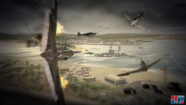 Pearl Harbor ist nur einer der Einsatzorte, in die euch die Kampagne verschlägt. Dabei kämpft ihr nicht nur gegen die Japaner, sondern helft z.B. auch der britischen Royal Airforce im Kampf gegen die Nazis in der Schlacht um London, steht den Franzosen bei Angriffen auf Paris bei oder vertreibt die Deutschen aus Nordafrika und wagt gegen Ende sogar einen Luftschlag gegen Berlin. Es ist schon ein tolles Gefühl, über den Big Ben hinweg oder unter dem Eifelturm hindurch zu fliegen, auch wenn die auf den ersten Blick ansehnliche Kulisse mit einigen technischen Problemen zu kämpfen hat: Gerade in späteren Missionen wie Pearl Harbor, in denen sich enorm viele Objekte und Einheiten auf dem Bildschirm tummeln und dicke Rauchschwaden durch die Luft ziehen, geht das Geschehen oftmals merklich in die Knie und wird von heftigen Ruckelanfällen gestört. Auch das auffällige Tearing und die mitunter groben und sich wiederholenden Einheits-Texturen der Häuser und Landschaften sind nicht gerade ein Aushängeschild für die Next-Gen-Power der Xbox 360, die grafisch gleichauf mit der PC-Version liegt. So richtig nervig sind die sich ständig wiederholenden Sprüche eurer Flügelmänner und Feinde, die neben dem gelungenen Brummen der Motoren und Propeller sowie einem orchestralen Soundtrack die ansonsten überzeugende Klangkulisse trüben. Allerdings wird nur in englischer Sprache gequasselt, so dass ihr nur deutsche Untertitel zu sehen bekommt, die ihr bei all der Hektik jedoch nur selten lesen könnt.
