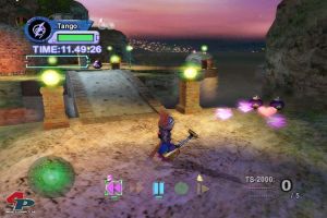 Mit seinem Gitarrenstaubsauger schluckt er Tonnen, Rohre und Bomben, um sie später als gefährliche Geschosse auszuspucken. Die Zielerfassung wurde zwar gegenüber dem Vorgänger verbessert, denn ihr könnt bequem zwischen anvisierten Monstern wechseln. Aber trotzdem ist es sehr schwer, ein fixiertes Ziel in der Bewegung nicht zu verlieren.