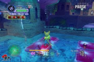 Und die Widersacher? Blinx´ schweinische Gegenspieler gehören zur diebischen Tom-Tom-Gang, die dank ihrer Raumverzerrungstechnik plötzlich überall auftauchen kann. Aber es gibt weder markante Bösewichte noch erwähnenswerte Zwischensequenzen, die den Konflikt dramatisieren. Da man die Grunzer nach jedem Kapitel mit Blinx selber spielt, wird der erzählerische Fokus noch weiter vom eigentlichen Helden entfernt. Und man das Gefühl nicht los, dass sich gerade der neue Teamgedanke der Katzenelite-Einheit „Time Sweeper“ stark an Segas letztem Sonic-Auftritt orientiert. Nur muss ein Team aus Persönlichkeiten mit unterschiedlichen Stärken und Charisma bestehen. Leider fehlt den Miezen trotz einiger witziger Slapstick-Momente einfach die Coolness des Rennigels und seiner skurrilen Freunde.