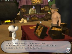 doch das ist nicht so einfach, denn von dort hat man sie erst schmählich verjagt. Einstweilen sitzen sie in dem Tal fest, dessen Bewohner ganz schön seltsam sind. Nach ihrer Flucht landen sie in der Idylle, sind aber noch getrennt. Im ersten Teil lernen sie die wichtigsten Leute kennen, als da sind die hübsche Thorn und ihre Grandma Ben. Vielleicht gibt es hier jemand, der ihnen weiterhelfen kann.Ihr spielt zunächst Fone, den nettesten der drei Bones, der rasch Freunde findet. Er ist hilfsbereit und versucht, mit allen gut auszukommen. Schon beim ersten Aufeinandertreffen verliebt sich der Knochen Hals über Kopf in Thorn, wagt aber nicht, es ihr zu sagen. Anders der eingebildete Phoney, der einst in Boneville ein reicher Man war. Jetzt ist er unfreundlich, und pflaumt jeden an, der nicht gleich nach seiner Pfeife tanzt. Ganz anders ist wieder Smiley, der arm aber glücklich ist. Er ist Musiker und dekoriert die idyllische Landschaft mit seinen Zigarrenkippen, die auch mal suchen müsst.