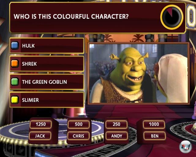 Verschenkte Reichtümer beiseite geschoben, wenden wir uns dem Film-Quiz zu: Kenner der Serie werden von der ersten Minute feststellen, dass sich im Vergleich zu Buzz: Das Mega-Quiz erstaunlich wenig getan hat – was zwar nicht sehr verwundert, schließlich machte das letzte Spiel sowohl in Sachen Fragen-Auswahl als auch Grafikqualität die größten Sprünge. Die Entwickler haben sich jetzt auf dem vorhandenen Gerüst ausgeruht und nur hier und da die Feile angesetzt – beim Spielmodus »Ordnungssinn« z.B. spielt jetzt auch die Antwortzeit eine Rolle. Ansonsten bleiben Innovationen aus, es gibt mit »Vermächtnis« nur einen neuen Modus (in der Kandidaten um mehr Punkte spielen, wenn ihre Vorgänger Fehler machen) – und der Kenner vermisst einiges: Das »Bombenspiel« wurde gekickt, es gibt nur noch die Schwierigkeitsgrade »normal« und »Film-Fanatiker«, die ihrerseits Einfluss auf Spiellänge und Rundenzahl haben. Aber natürlich erwarten euch wieder neue, thematisch passende Figuren, mit denen man zusätzlich zum bewährten Kader herumbuzzert: Eine Vampirella, einen Piratenkäptn, einen Rambo oder ein Schleimmonster. Diese Freaks sind wie üblich comichaft-einfach gestaltet, aber witzig animiert.