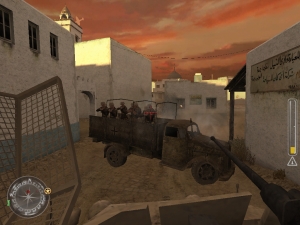 Sie ziehen sich bei Beschuss schnell zurück, benutzen gern und oft Granaten und feuern noch halbtot im Liegen weiter. Lästig (bzw. gut für den Spieler) ist ihr Habitus, sehr berechenbar zu agieren: Beim Nachladen wechseln sie kaum die Position und tauchen fast immer an derselben Stelle wieder auf, an der sie abgetaucht sind – Bumm, Treffer! Sie machen sich weder die Mühe, die Umgebung für adaptierten Schutz zu nutzen noch wechseln sie unverhofft die Laufrichtung beim Sturm – man muss einfach nur vorhalten und abdrücken. Generell solltet ihr mit der Munition haushalten, denn ihr dürft nur zwei Waffen (plus einige Granaten) mit euch herumschleppen. Gehen euch die Kugeln aus, bleibt euch nichts anderes übrig, als die Knarren Gefallener aufzuklauben. Ganz der Serientradition entsprechend bedient ihr außerdem stationäre Geschütze oder befindet euch gelegentlich auf der Ladefläche eines LKW, bewaffnet mit MG und Panzerfaust, um von hinten anrollende Feinde zu erledigen – same old, same old.Mein Hauptquartier, mein Panzer, meine Sturmtruppen