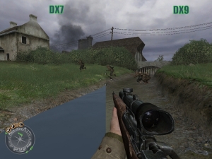 spitze! Aber noch viel mehr als das braucht der zukünftige Deutschland-Befreier eine Hardware jenseits aller Portemonnaie-Schmerzgrenzen, wenn er die volle Grafikpracht enthüllen will. Denn CoD 2 besteht im Grunde aus zwei 3D-Engines: einer DirectX 9- und einer DirectX 7-kompatiblen. Letztere entspricht in etwa dem Stand des Vorgängers, wenn auch natürlich technisch aufgebohrt und detaillierter – aber eben nicht spektakulär. Dafür läuft diese Variante (die ihr übrigens jederzeit wechseln könnt) auch auf Systemen, bei denen weder Prozessor noch Grafikkarte 500 Euro gekostet haben, sehr anständig. Falls es trotzdem noch ruckeln sollte, könnt ihr Texturauflösung, Schatten, Anti-Aliasing und weitere Details bis auf Medal of Honor-Niveau herunterregeln.