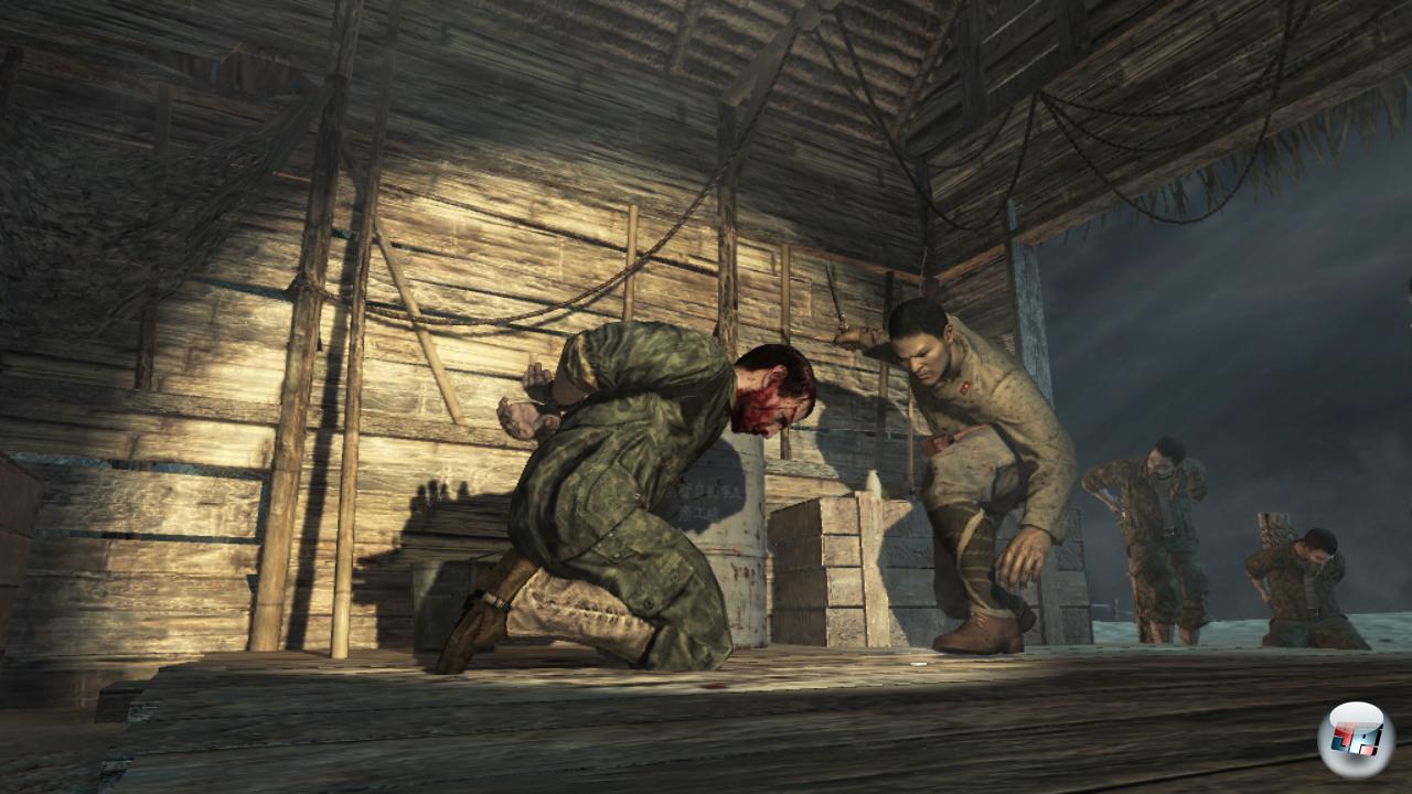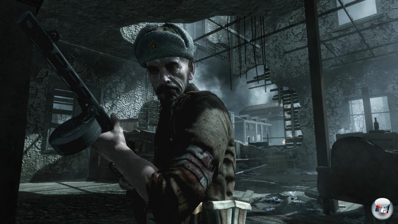 WaW bleibt dem Aufbau der Serie treu: Ihr bekommt den Krieg aus verschiedenen Perspektiven zu sehen – in diesem Fall sind das die Augen von Private Miller sowie die seines russischen Kollegen Dimitri Petrenko. Mit Miller verbringt ihr die eine Spielhälfte in und um Japan herum, mit Petrenko geht’s von Stalingrad nach Berlin. Die Missionen wechseln sich ab, außerdem wird munter in der Zeit gesprungen: Es geht im Jahre 1942 in tiefasiatischer Dunkelheit los, danach springt ihr ins Stalingrad desselben Jahres, danach 1945 in die Seelower Höhen, dann zurück zu Miller, der sich am 15. September 1944 in Peleliu tummelt, dann wieder zurück zu Petrenko, der es sich in einem Panzer gemütlich gemacht hat uswusf. Leider gibt es keine richtige Story im eigentlichen Sinne: Zwar werden alle Missionen extrem stylisch inszeniert eingeleitet, wodurch ihr nicht nur etwas historisches Wissen erntet, sondern auch darauf vorbereitet werdet, was euch bevorsteht – aber einen echten roten