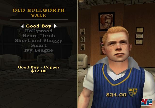 Wie an jeder Schule gibt es auch an der Bullworth Academy eine Cliquenbildung: Da wären Schlägertypen, Streber, Sportler, reiche Schnösel oder Halbstarke. Mit jeder erfüllten Mission gewinnt oder verliert ihr Respekt bei den entsprechenden Gruppen, was direkten Einfluss darauf hat, ob ihr von den Mitgliedern der Cliquen gemocht oder gehasst werdet. Aber banget nicht, im Laufe des Spiels legt ihr euch mit jeder Gruppe an – genauer gesa gt gibt es am Ende jedes Kapitels einen großen Showdown mit jeweils einer Bande. Über euer gegenwärtiges Verhältnis zu den einzelnen Gruppierungen könnt ihr jederzeit in den Rockstar-typisch ausufernden Statistiken nachschlagen, in denen sich noch tausend andere mehr oder weniger wissenswerte Fakten finden – etwa, wie viele Meter ihr bislang gelaufen seid, wie oft ihr von der Polizei erwischt wurdet, wie viele eurer Kicks tatsächlich trafen oder wie viel Geld ihr bislang verdient habt. Denn ohne Kohle geht auch hier nix, allerdings wird hier in wesentlich kleineren Maßstäben gerechnet als in den GTAs. Dafür kostet auch alles weitaus weniger, außerdem könnt ihr euch mit kleinen Jobs wie Zeitungen austragen oder Rasenmähen etwas dazuverdienen. Dieses Geld investiert ihr am Besten in euer Äußeres, denn Jimmy, Rebell der er ist, kann natürlich schon sehr früh auf die Schuluniform pfeifen. Ihr könnt nicht nur beim örtlichen Friseur euren Wayne Rooney-Haarschnitt der neuesten Mode anpassen, sondern auch eure Klamotten komplett umkrempeln: Wie wäre es also mit Baggy Pants, Piratenhut, Werwolfmaske, Hawaii-Hemd, Rentierpulli von Mutti (trägt Jimmy den, wird er von allen ausgelacht), Anglerhut, Basecap, einer feschen Uhr, einem Glücks-Armband oder Punker-Hosen? Später könnt ihr euch sogar tätowieren lassen.
