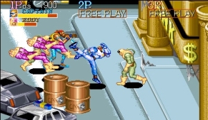 Natürlich gibt es auch eine Reihe Spiele, die man sich ein Mal ansieht, und danach wieder vergisst: Avengers ist ein vertikal scrollendes, erschreckend spaßfreies Beat-em-Up, The Speed Rumbler ein merkwürdiges Konglomerat aus Racer und Shoot-em-Up, Last Duel ein lausiger Vertikalshooter. Und dann ist da noch Street Fighter, der Urvater der weltbekannten SF-Prügelserie. Das hat zwar historischen Wert und mit Ryu, Ken und Sagat spätere SF2-Veteranen im Kader, besticht aber sonst eher durch die Abwesenheit von Spaß und Spielbarkeit.