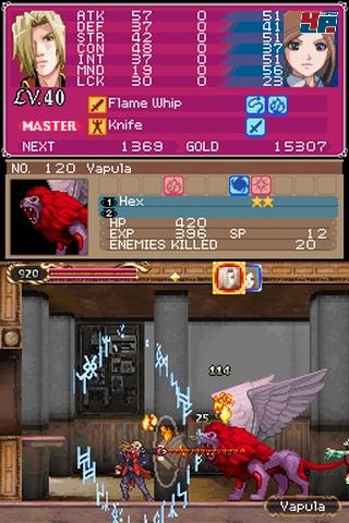 wieder länger, der Schlaf kann warten: Castlevania meldet sich mit einem düsteren Kapitel zurück auf dem Doppelbildschirm und serviert mir all das, was ich schon im September 2005 an „Dawn of Sorrow“ (vgl. Test) geliebt habe: Sehr gute Steuerung, klasse Leveldesign, enormer Sammeltrieb, interessante Spezialfähigkeiten und eine hervorragende Spielbalance. 20 Bossmonster vom Riesenkopf bis hin zum Drachen warten auf euch, 150 Kreaturen vom einfachen Skelett bis zum Sandwurm gilt es zu besiegen, 300 Gegenstände vom Reisball bis zum Claymoreschwert zu finden.