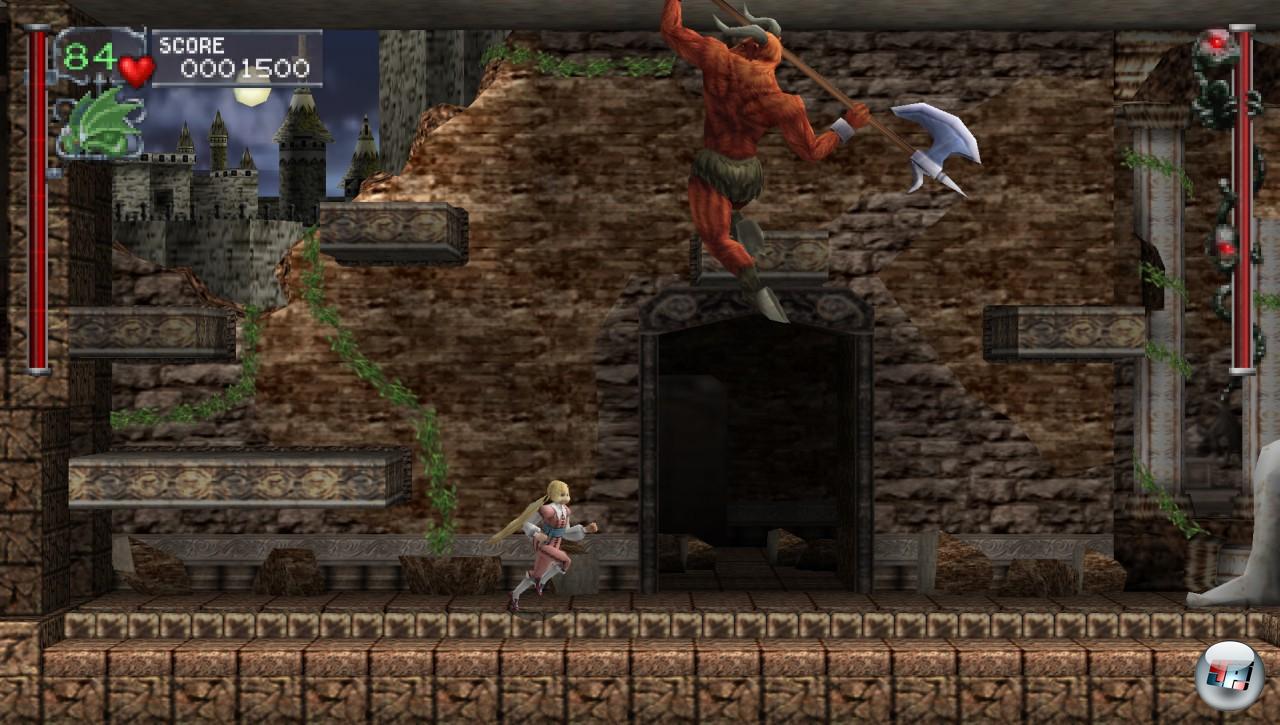 Ihr übernehmt die Rollen von Richter Belmont sowie Maria Renard, die im Jahre 1792 Richters entführte Freundin Annette aus den langnageligen Fingern Draculas zu retten gedenken. Genau genommen ist Richter anfangs allein, die neunmalkluge Maria muss erst gefunden und befreit werden. Ist sie an eurer Seite, könnt ihr sie im Hauptmenü als spielbare Figur wählen, was mehr als nur kosmetische Wirkung hat: Maria hat zwar weniger Lebensenergie als Richter, läuft aber schneller und springt höher. Außerdem trägt sie keine Peitsche bei sich, sondern erledigt Gegner per gut gezieltem Taubenwurf. Ähm? Wirklich.