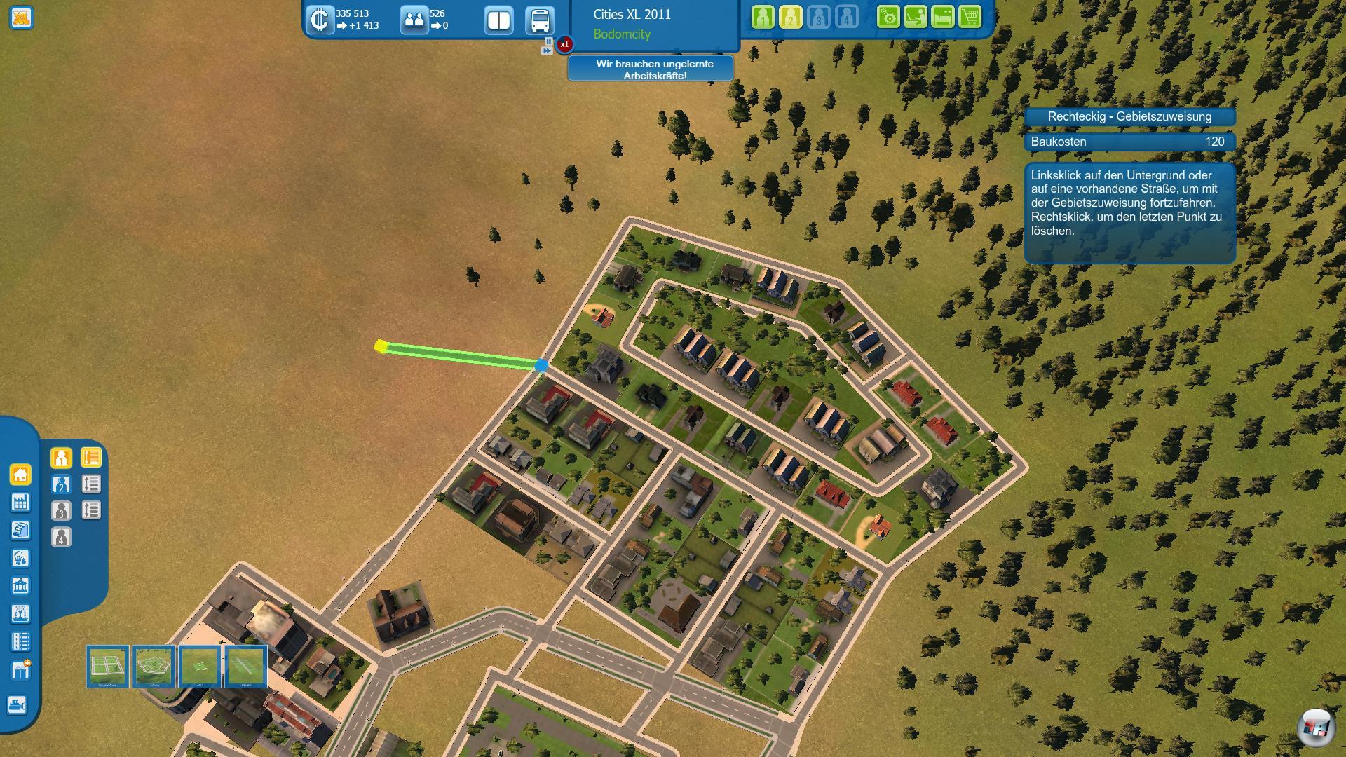 dem fällt vor allem eines auf: Es ist noch einfacher geworden. War es schon bei Cities XL nicht sonderlich schwer, eine ansehnliche Stadt zu bauen, die auch noch Profit abwirft, geht es nun noch problemloser. Das liegt u.a. daran, dass viele der neuen Bauten schon von Beginn an wählbar sind. So kann man sich z.B. eine touristisch wertvolle Kirche in ein 2000-Seelen-Nest stellen. Sogar Schloss Neuschwanstein lässt sich von Beginn an bauen, wenn man das nötige Kleingeld dafür hat. Für König Ludwigs II Märchenpalast braucht man allerdings jede Menge Büros und leitende Angestellte, die man sich immerhin erarbeiten muss und nicht schon von Anfang an hat.