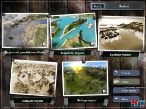 | Es gibt fünf Klimazonen, in denen ihr eure Stadt errichten könnt. In der Ebene ist es einfacher als in den Bergen. |