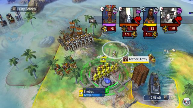 Es gibt außerdem die Möglichkeit, menschliche oder KI-unterstützte Teams zu bilden oder ein Kopf-an-Kopf-Rennen gegen einen Freund und drei zufällige KI-Herrscher zu starten. Dabei kann man auf vollen Kommunikationskomfort zurückgreifen: Mikro, Kamera und Freundeslisten und -einladungen werden unterstützt, so dass ihr live zusammen planen und schwatzen könnt. Firaxis wird zudem einmal die Woche ein „Game of the Week“ anbieten, das für Ranglistenzwecke dient. Wer keine Lust auf statistischen Wettbewerb hat, kann auch ein schnelles Spiel starten.