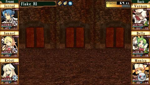Ja, die Kämpfe werden bis auf wenige Ausnahmen ganz altmodisch per Zufallsgenerator initiiert, die Häufigkeit ist aber erfreulich niedrig, so dass der Erkundungsfluss in den Dungeons kaum gestört wird. Manche Konfrontationen sind sogar im Voraus als symbolische Platzhalter erkennbar. Die Auseinandersetzungen selbst laufen strikt rundenbasiert ab. Man gibt jedem seiner Gruppenmitglieder einen Befehl der ihn angreifen, verteidigen, einen Gegenstand einsetzen, einen Zauber wirken oder eine Fertigkeit verwenden lässt. In der darauf folgenden Aktionsphase werden diese dann zusammen mit den Manövern der Gegner ausgeführt, wobei sich die Darstellung auf simple Effekte und Texteinblendungen beschränkt, die alle einzeln per Tastendruck bestätigt werden müssen. Zwar kann man während der Aktionsphase auch bei gedrückter X-Taste das Steuerkreuz nach unten drücken, um den Ablauf zu automatisieren. Besonders komfortabel ist das aber nicht und eine Option zur vollautomatischen Darstellung ohne ständig irgendwelche Knöpfe gedrückt zu halten, gibt es nicht…