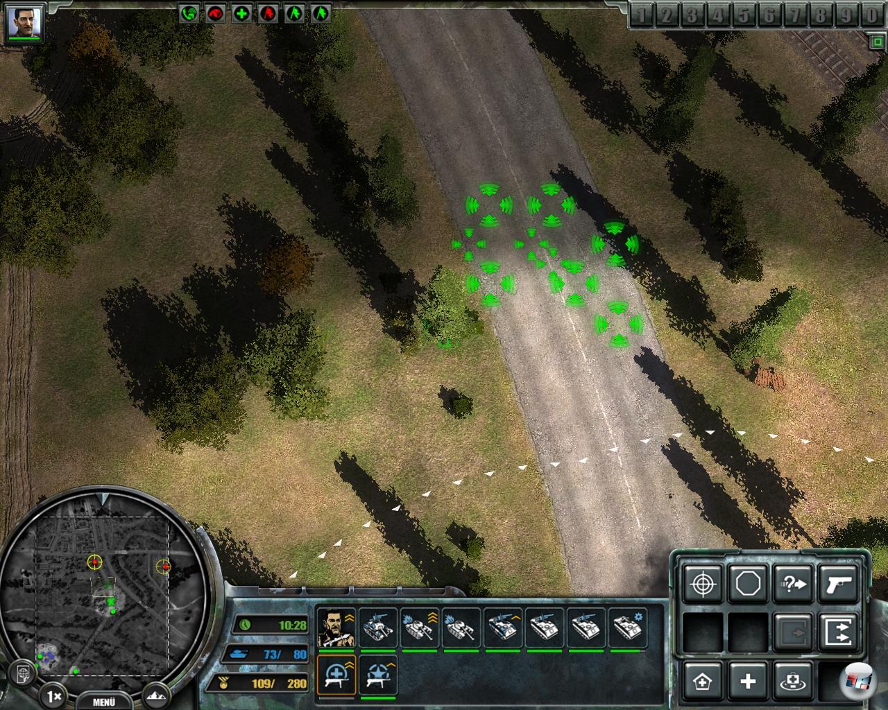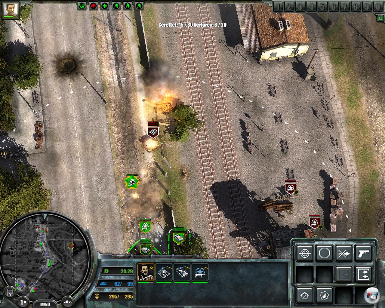 Formationen einzunehmen. So kann man auch nicht wirksam festlegen, wer vorne und hinten fährt. Schlecht für die Sanitäter und Pioniere, die oft in vorderster Front aufgerieben werden, wo sie eigentlich gar nicht hingehören. Hier wäre mehr automatisches Vorgehen ebenso wünschenswert wie beim in Deckung gehen, das nur die Gegner hinkriegen, die sich schön ducken. Im Gewusel des Kampfes ist es kaum möglich, mal Handgranaten einzusetzen, was gegen Fallschirmjäger und Schützen vonnöten wäre, die mühsam mit Schüssen niedergekämpft werden.