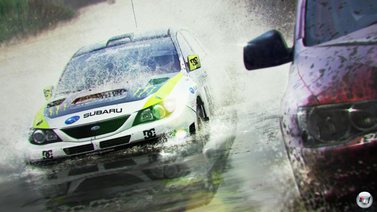 nach hinten richten. Neben klassischen Boliden wie dem Subaru Impreza STI, Mitsubishi Evo X oder dem Colin McRae R4 finden sich auch viele weitere Offroad-Klassen wie Buggys, Trophy Trucks (Dodge Ram, Chevrolet Silverado), Raid T1 (VW Tuareg 2, Mitsubishi Lancer) sowie Stock Baja (Toyota F2 Cruiser, Hummer HX). Klingt nach einem großen Fuhrpark? Ist aber nicht so! Gerade mal 25 verschiedene Fahrzeuge wurden ins Spiel gepackt! Warum die Auswahl verglichen mit dem Vorgänger so mager ausfällt, hat zwei Gründe: Zum einen wurden Klassen wie die schwerfälligen Renn-Trucks, langsamer Frontantriebler (FWD-Autos) sowie die PS-starken Klassiker-Boliden wie der alte Audi Sport Quattro ersatzlos gestrichen. Zum anderen kauft man sich für Standard-Boliden wie den Nissan 350z oder den Pontiac Solstice GXP jetzt einfach Rallyecross- sowie Trailblazer-Pakete, mit denen z.B. ein mächtiger Spoiler montiert wird. Auch wenn man in eine höhere Schwierigkeitsklasse aufsteigt, muss das Scheckbuch gezückt werden, denn jedes Auto muss erst für den Profi- bzw. den All Star-Level hergerichtet werden, bevor man beim Event starten darf. Klar, die Ausstattung verändert sich, aber trotzdem bleiben es die gleichen Grundmodelle. Schade, dass man den Umfang hier merklich zurückgeschraubt hat… Zumindest gibt es wieder Unmengen an Lackierungen und neuerdings dürfen sogar verschiedene Hupen-Klänge sowie diverser Cockpit-Schnickschnack freigeschaltet werden. Es sieht schon lustig aus, wenn eine Wackeldackel-Mumie auf dem Armaturenbrett den Headbanger macht oder der eigene 360-Avatar kopfüber am Innenspiegel baumelt. Außerdem hören sich die Boliden genau so gut an wie sie aussehen – man darf sich also auf herrlich röhrende Motoren freuen, die zusammen mit den erstklassigen Soundeffekten (wie z.B. das Knistern beim Rutschen über den Sand) und den rockigen Musikstücken für eine durchweg gelungene Audio-Präsentation sorgen.
