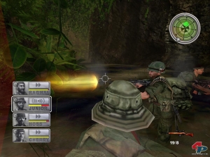 Im Dschungel erwarten euch 14 Missionen, die ihrerseits noch in viele Aufträge unterteilt sind, welche sich wiederum in Haupt- und Bonusaufgaben splitten. Während grundlegende Befehle wie »Sorg dafür, dass alle überleben!« oder »Erreiche die Abholzone!« immer ausgeführt werden müssen, sollt ihr in den Bonusaufgaben z.B. dafür sorgen, dass Dorfbewohner überleben oder die Hundemarken gefallener Kameraden gesichert werden. Je mehr Zusatzaufgaben ihr erledigt, desto mehr Erfahrungspunkte gibt es am Ende der Mission. Die könnt ihr dann nach Gusto auf eure Truppe verteilen, und somit Spezialisten heranzüchten. Nicht, dass das wirklich nötig wäre: Eure Jungs stellen sich von Anfang an ziemlich clever an, was das Finden und Ausschalten von Gegnern angeht. Nur was die eigene Verteidigung betrifft, haben die KI-Soldaten den Überlebensinstinkt eines betrunkenen Lemmings: Egal ob treffsicherer Scharfschütze aus dem Hinterhalt oder vorwitzig heranschwirrende Handgranate – eure Mannen bleiben felsenfest stehen, bis sie Sekunden darauf wimmernd am Boden liegen. Dann obliegt es eurer Verantwortung zu ihnen zu kriechen und etwas Verbandszeug zu spendieren. Dumm wird es natürlich, wenn ihr dabei auch erwischt werdet, denn dann ist die Mission verloren, da keiner mehr da ist, der den anderen heilen könnte – obwohl genug Medizin vorhanden wäre.
