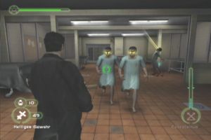 Mit letzterem könnt ihr allerdings nicht nur besonders verwundbare Körperstellen ausmachen, sondern auch im Dunkeln sehen sowie versteckte Durchgänge enttarnen, was auf der PS2 wegen des stärkeren Unschärfeeffekts teils deutlich schwerer fällt. Zudem hilft euch der geschärfte Blick beim Einsammeln wieder verwendbarer Munition sowie beim Lösen einiger Rätsel.